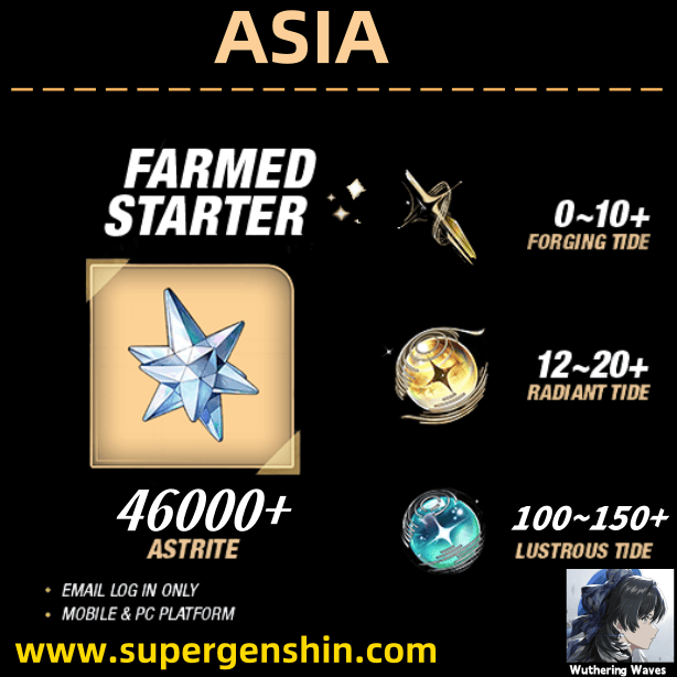 ASIA|46000+ Astrite|100+Lustrous Tide|Radiant Tide:12+|outlook mailbox|safe and stable|0-20 weapons|Wuthering Waves Resource Account Starter All Server